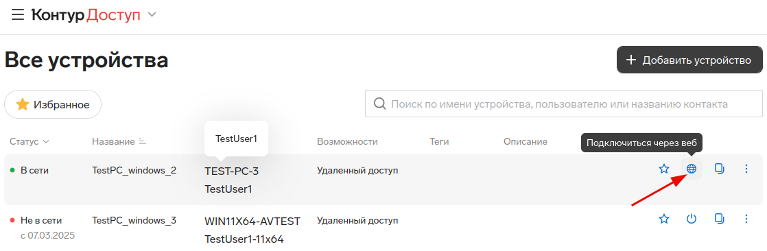 При выборе этого подключения удаленный рабочий стол откроется сразу, если компьютер есть в списке Контур.Доступа. Чтобы компьютер появился в списке, настройте абонента по инструкции на сайте Контура.