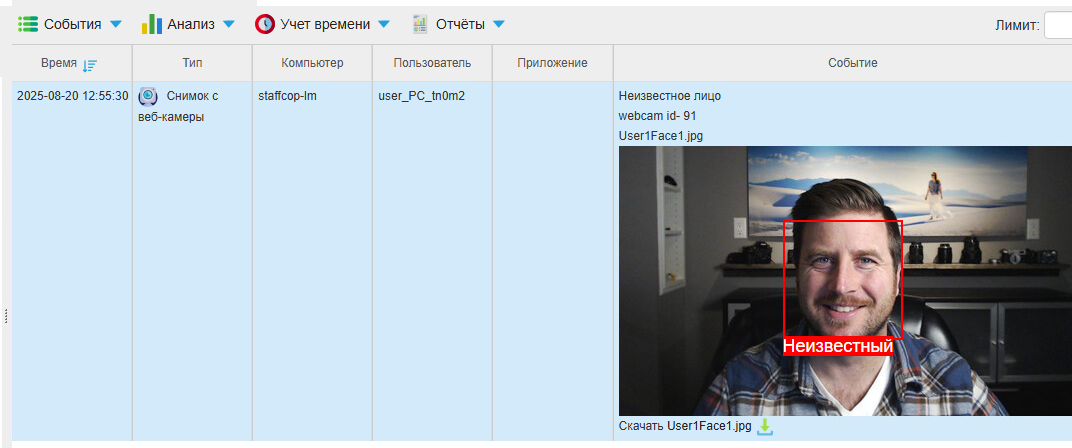 Сервер распознавания может распознавать лица на снимках веб-камер.