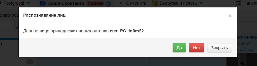 Если лицо соответствует пользователю, ответьте Да на вопрос «Данное лицо принадлежит пользователю TestUser?».