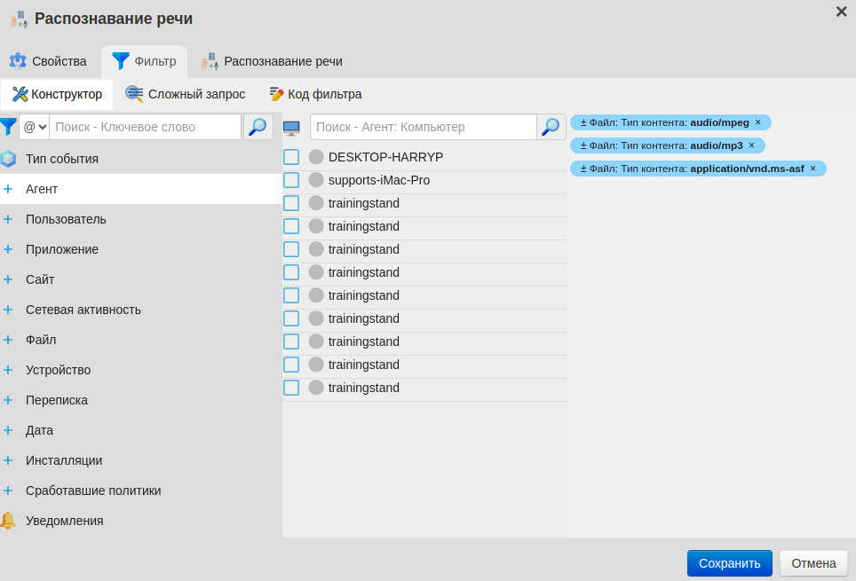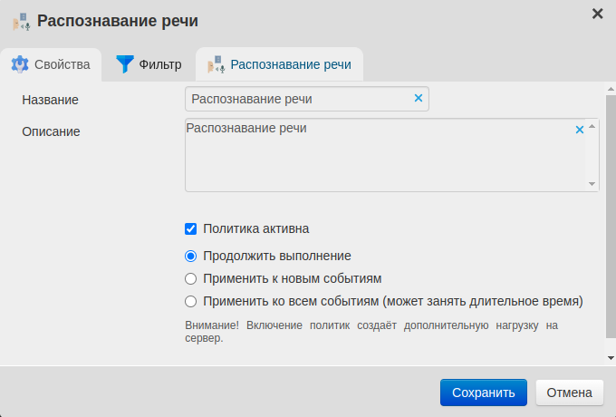 В папке Политики → Анализ контента откройте Распознавание речи.