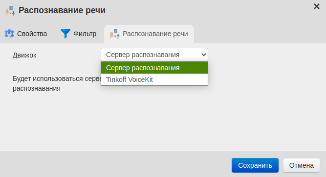 Перейдите на вкладку Распознавание речи и выберите Движок → Сервер распознавания,