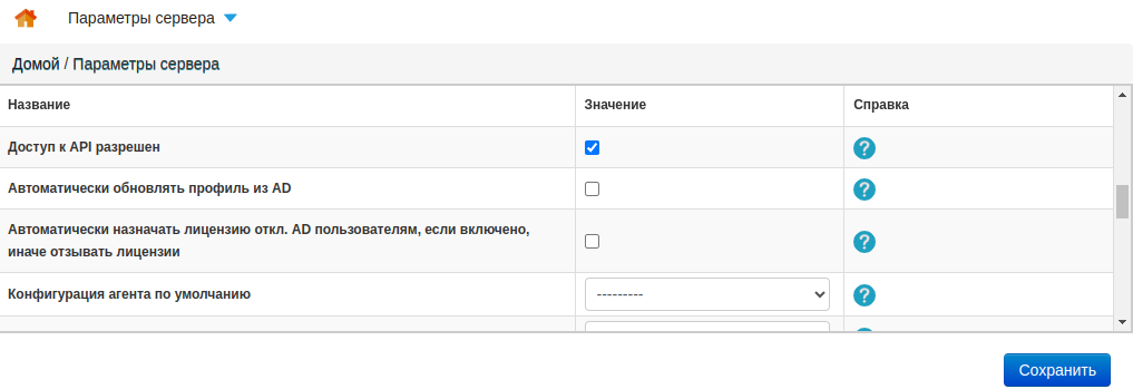 Откройте в веб-интерфейсе Панель управления → Параметры сервера: