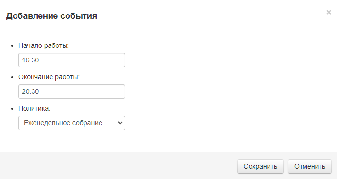 Укажите Начало работы и Окончание работы и выберите Еженедельное собрание.