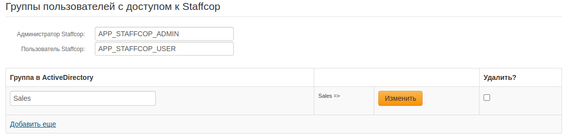В секции Группы пользователей с доступом к Staffcop нажмите Добавить еще.